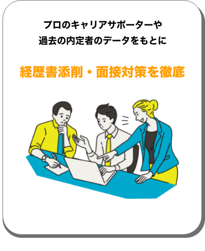 専属のキャリアサポーターがキャリアコーチングから転職支援まで一貫して行うサービスです。